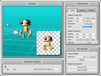 - Generate directional sprite sheets from animated 3D models.